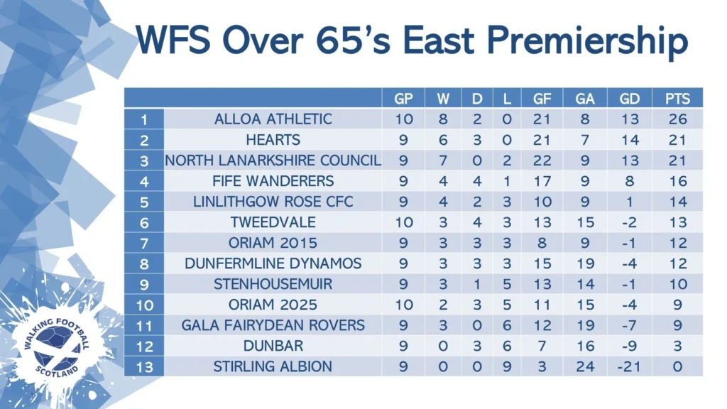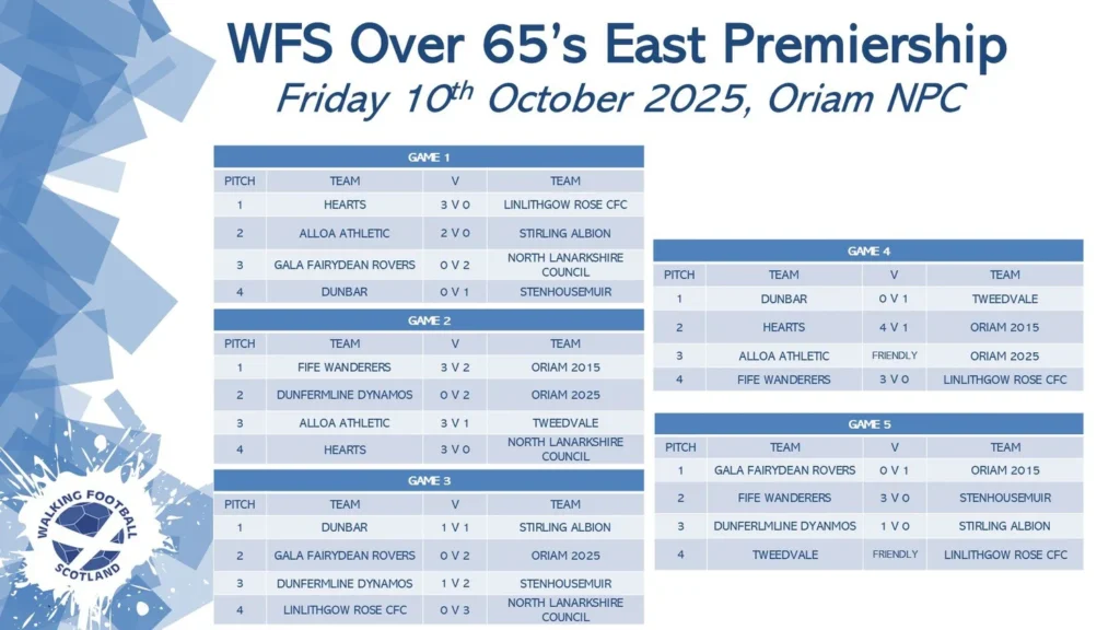 Over 65’s East Premiership division results Friday 10th October 2025